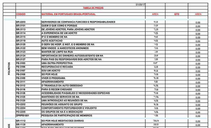 Para as Áreas e Núcleos distribuidores, o preço a ser considerado é o constante no “Formulário para todos os pedidos”. As regras, para aquisições de materiais, devem ser solicitadas ao escritório, através do e-mail: